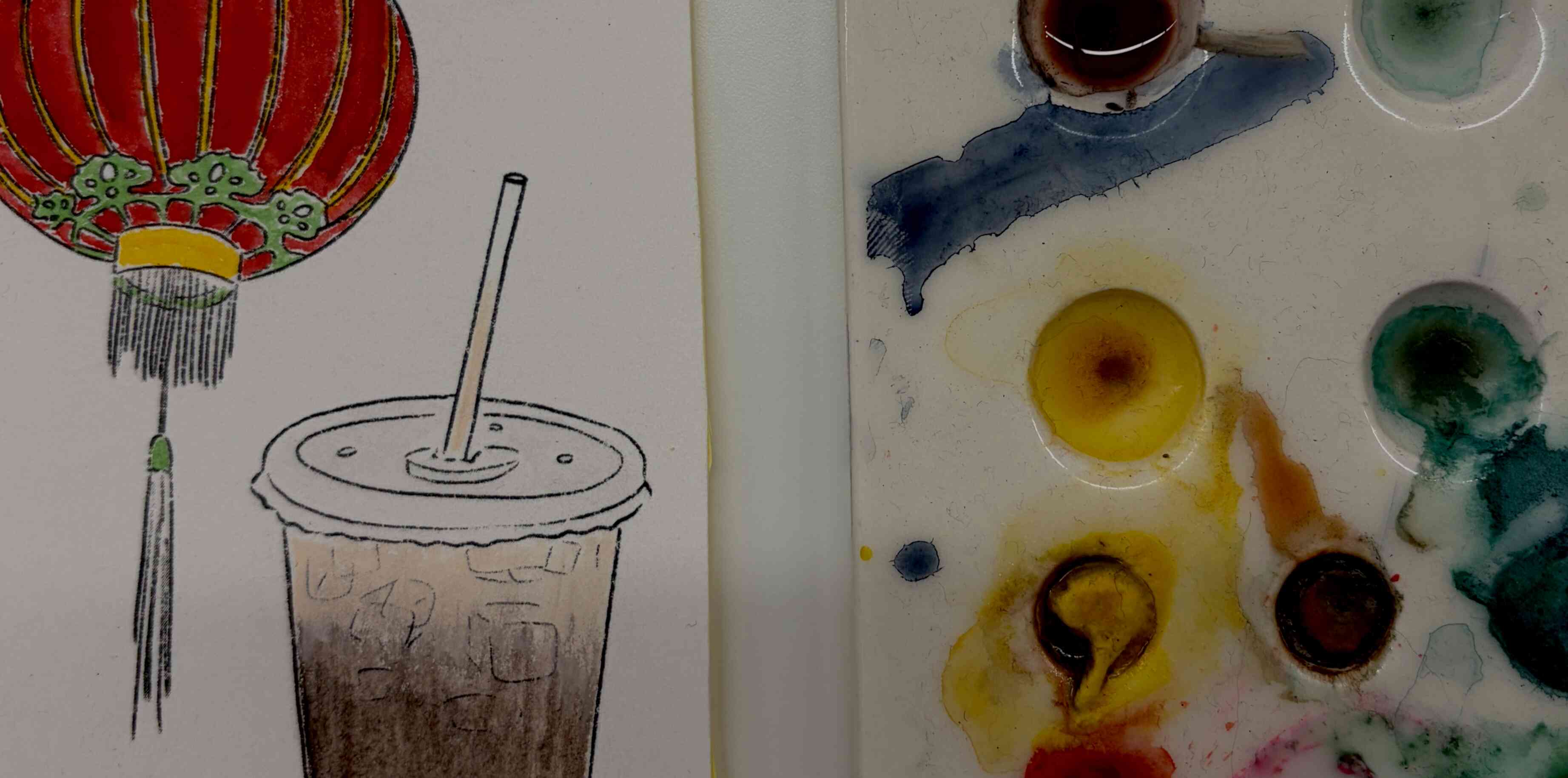 Earlier this month, my partner and I went to our local craft shop for a sticker making workshop. I painted a Chinese lantern, and an iced coffee that looks like a Horchata. They now live in my Midori notebook.